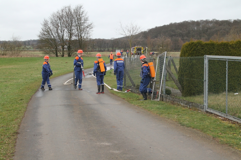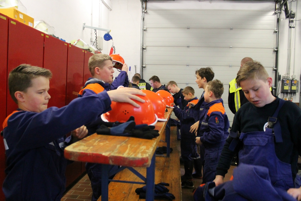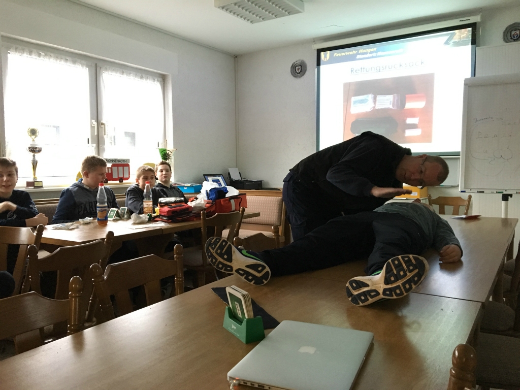 In der Zeit zwischen den Einsätzen saßen die Jugendlichen aber nicht  herum. Der stellvertretende Wehrführer Jörg Göttsche zeigte Erste Hilfe, Wehrführer Stefan Leipold gab eine Unterrichtseinheit zum Thema Brennen und Löschen. Zudem wurden Knoten geübt – die braucht man sowohl bei den Wettkämpfen der Jugendfeuerwehr als auch später im Einsatzdienst immer wieder und wurden bei einem Einsatz mit Tragehilfe bei „Hoppes“ gleich gebraucht. Und wie in einer echten Berufsfeuerwehr hatten die Jugendlichen sich außerdem um den Küchendienst zu kümmern.