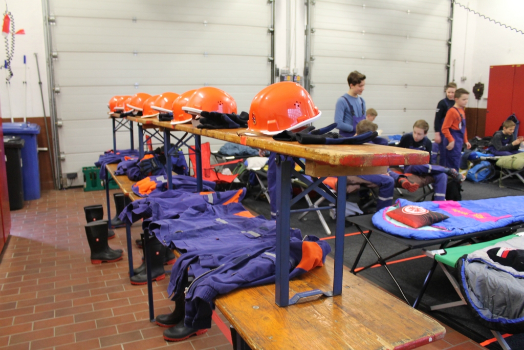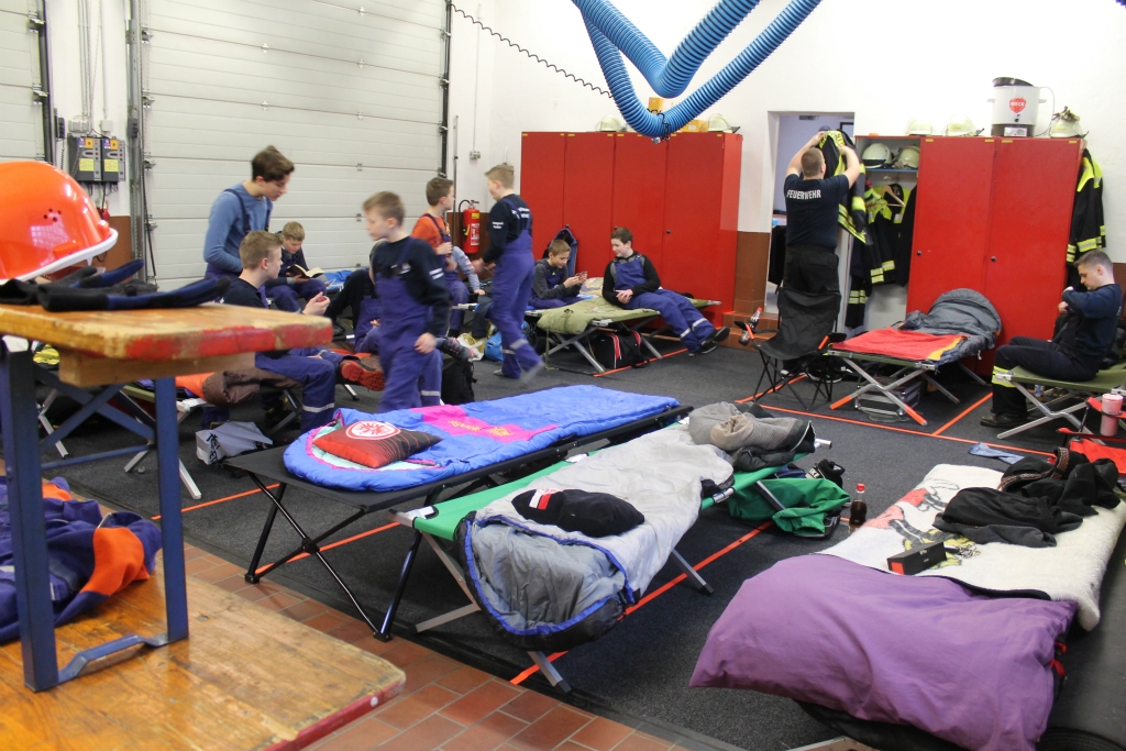 Ein Höhepunkt des Berufsfeuerwehrtages war die Übernachtung im Nonnenröther Feuerwehrhaus. Bevor sich die jungen Einsatzkräfte ins Bett legen konnten, wurden sie aber gegen 20.30 Uhr in den Eisenkauter Weg zu einem Hallenbrand alarmiert – ein Fehlalarm, wie sich später herausstellte.  Kurze Zeit später hieß das Alarmstichwort dann „Personensuche“ – diese konnte schnell im Waldbereich gefunden werden. Der Sonntag begann dann nicht nur mit dem gemeinsamen Frühstück, sondern auch einem Einsatz mit einer unter einem Anhänger eingeklemmten Person. Auch diese konnte von der Nonnenröther Jugendfeuerwehr gerettet werden.