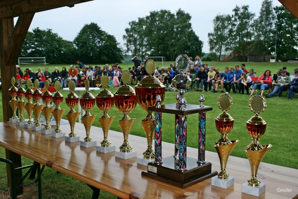 Den Jugendfeuerwehren geht es dabei aber nicht um die Pokale – auch wenn diese in der Vitrine natürlich schön aussehen. Vor allem geht es darum, dass die Jugendfeuerwehren zusammenkommen und die Mitglieder der manchmal kleinen Gruppen aus ebenso kleinen Dörfern merken, dass ganz viele andere Jugendliche auch dieses Hobby haben. Viele, die einst als Kinder auf dem Zeltlager waren, kommen nun als Betreuer und Helfer immer wieder. Deshalb packte auch die Nonnenröther Einsatzabteilung sowie Helfer aus dem Dorf gerne mit an, halfen beim Spaßwettkampf oder dem Frühstück.