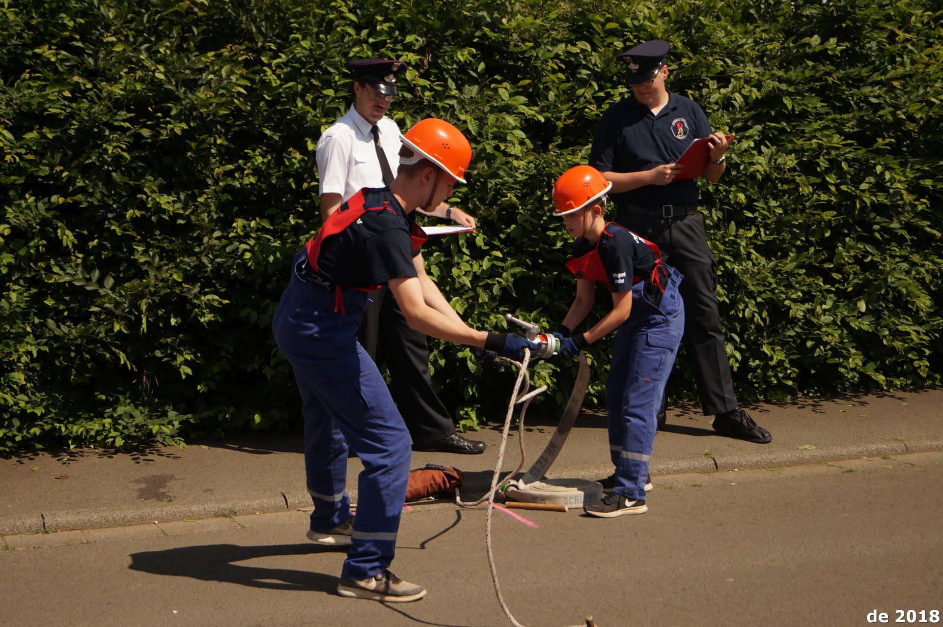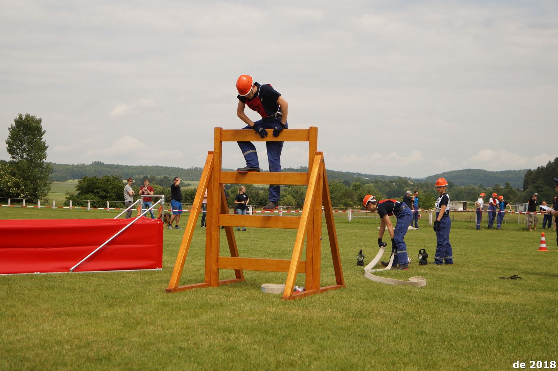 Spannend wurde es am Samstagmittag, als zwölf Teams im Wettbewerb um den Stadtpokal antraten. In gemischten Teams – lediglich Utphe konnte ein reines Mädchenteam ins Rennen schicken – traten die Jugendlichen in zwei Wettbewerbsteilen an. Zunächst galt es, einen Löschangriff mit zwei Strahlrohren aufzubauen. Dabei standen eine Kletterwand und eine Hürde im Weg. Im zweiten Teil wartete dann ein Staffellauf, der mit feuerwehrtechnischen Aufgaben gespickt war: So musste etwa ein Strahlrohr mit einer Leine eingebunden, ein C-Schlauch aufgewickelt und ein Leinenbeutel ins Ziel geworfen werden. Das Team Nonnenroth 1 blieb dabei zwar nicht ganz fehlerfrei, konnte aber am Ende dennoch über 1407 Punkte jubeln. Platz zwei holte sich die Hungener Jugendfeuerwehr mit 1395 Punkten, dritter wurde das Utpher Mädchenteam mit 1394 Punkten. Auf den weiteren Plätzen landeten die Jugendfeuerwehren aus Trais-Horloff, Langd, Villingen, Obbornhofen und Bellersheim.