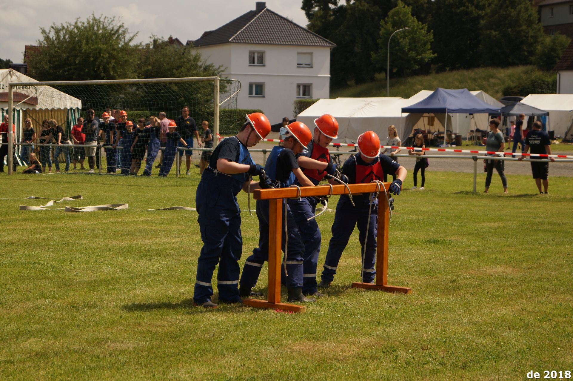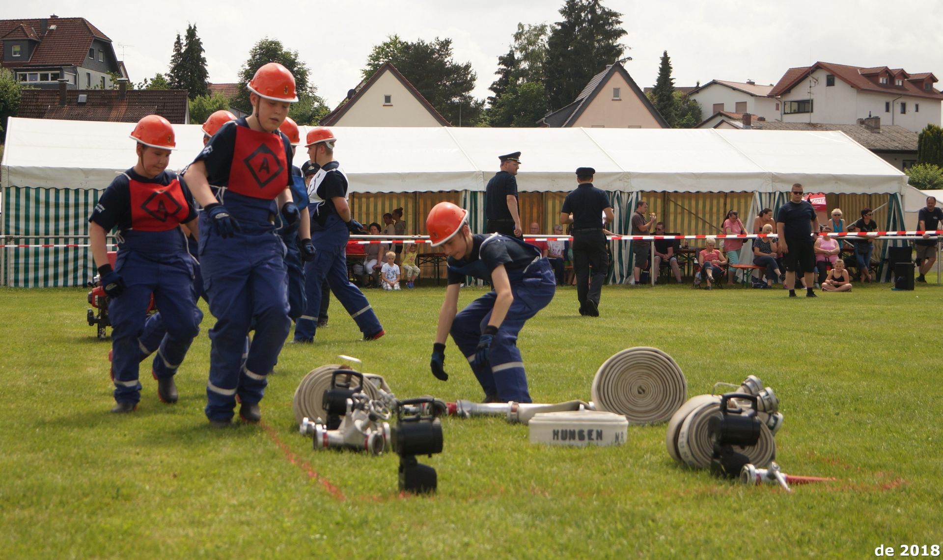 Selten war es bei einem Stadtpokal der Jugendfeuerwehren in der Punktewertung so dicht: Gerade einmal 99 Punkte lagen zwischen dem ersten und dem zwölften Platz, zwischen Platz zwei und drei war es gerade einmal ein Punkt. Am Ende konnte die Nachwuchswehr aus Nonnenroth jubeln, die zum dritten Mal in Serie den Stadtpokal holte. Wobei – eigentlich geht es beim Zeltlager der Jugendfeuerwehren nur am Rande um den Wettbewerb. Viel wichtiger ist es, dass sich die jungen Feuerwehrleute kennenlernen und Jungen und Mädchen im gleichen Alter treffen, die ebenfalls die Feuerwehr spannend finden. Denn nur, wenn der Nachwuchs Spaß hat, tritt er auch irgendwann in die Einsatzabteilung der Freiwilligen Feuerwehr ein – und die braucht in allen Orten stets neue Mitglieder. Also gibt es neben dem Stadtpokal auch noch einen Spiel- und Spaßwettkampf sowie eine Dorfrallye. Bei der Dorfrallye nutzten die Villinger Mädchen als gute Gastgeberinnen ihren Heimvorteil nicht aus und überließen allen anderen Teams den Vortritt. Hier gewann Trais-Horloff/Bettenhausen vor Langd 1 und Inheiden. Moment – Bettenhausen? Ist das nicht ein Licher Stadtteil? Schon. Aber seit vielen Jahren gibt es Freundschaften über die Gemeindegrenze hinaus – und die Jugendfeuerwehr ist darum auch ein gerngesehener Gast. Scherzes halber wurde sogar am Samstag vorgeschlagen, dort doch einmal das Hungener Zeltlager abzuhalten. Beim Spiel- und Spaßwettkampf holte sich der Zusammenschluss von Trais-Horloff und Bettenhausen den dritten Platz, zweiter wurden die Villinger Jungs, den Sieg sicherte sich Langd 2.