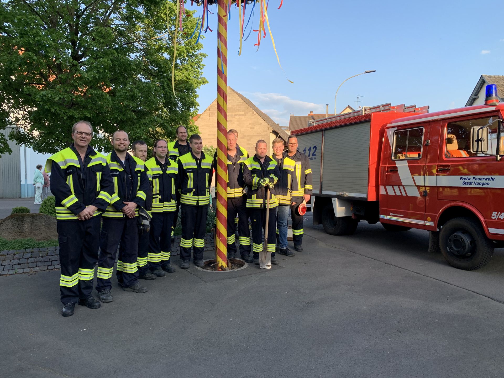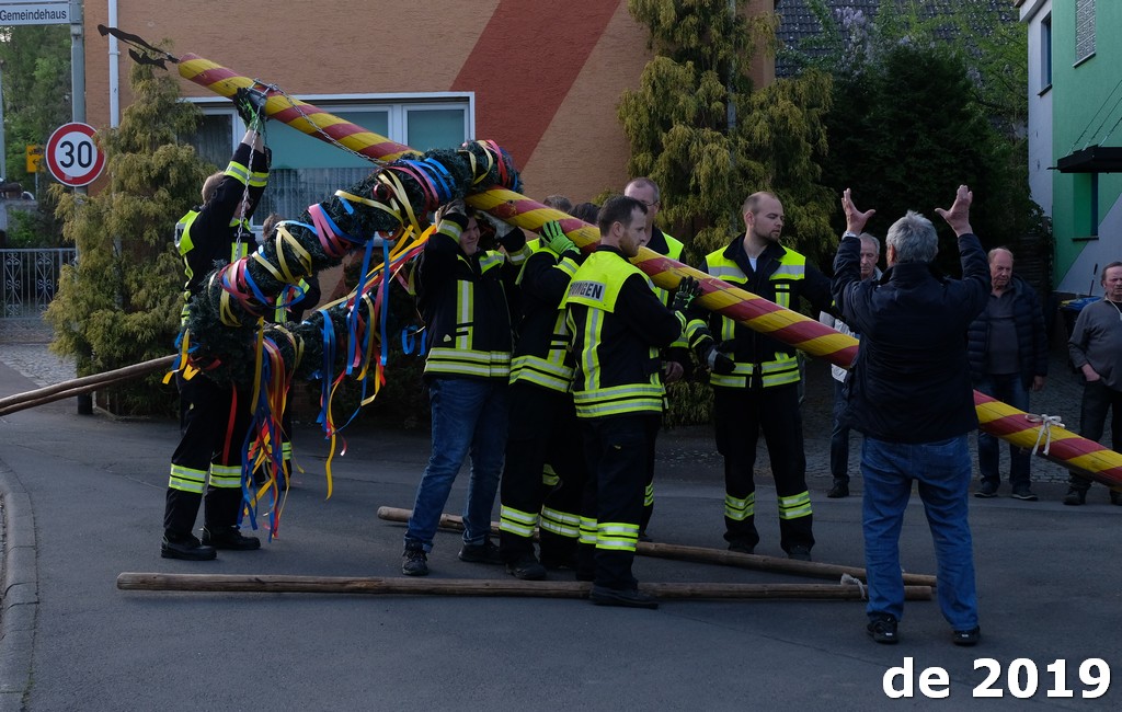 Traditionell ist es am Vorabend des 1. Mai Zeit, den Maibaum aufzustellen. Die Freiwillige Feuerwehr Nonnenroth hatte in diesem Jahr die Aufgabe, den Baum am Backhausplatz aufzurichten.