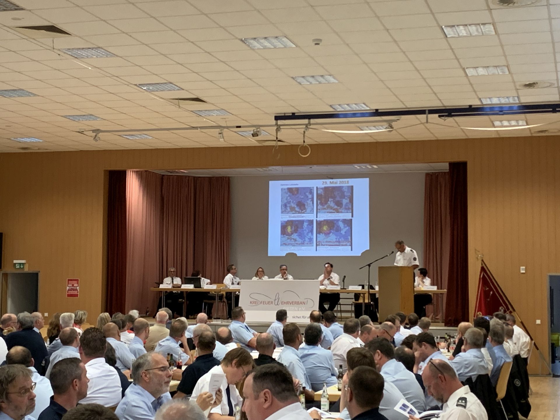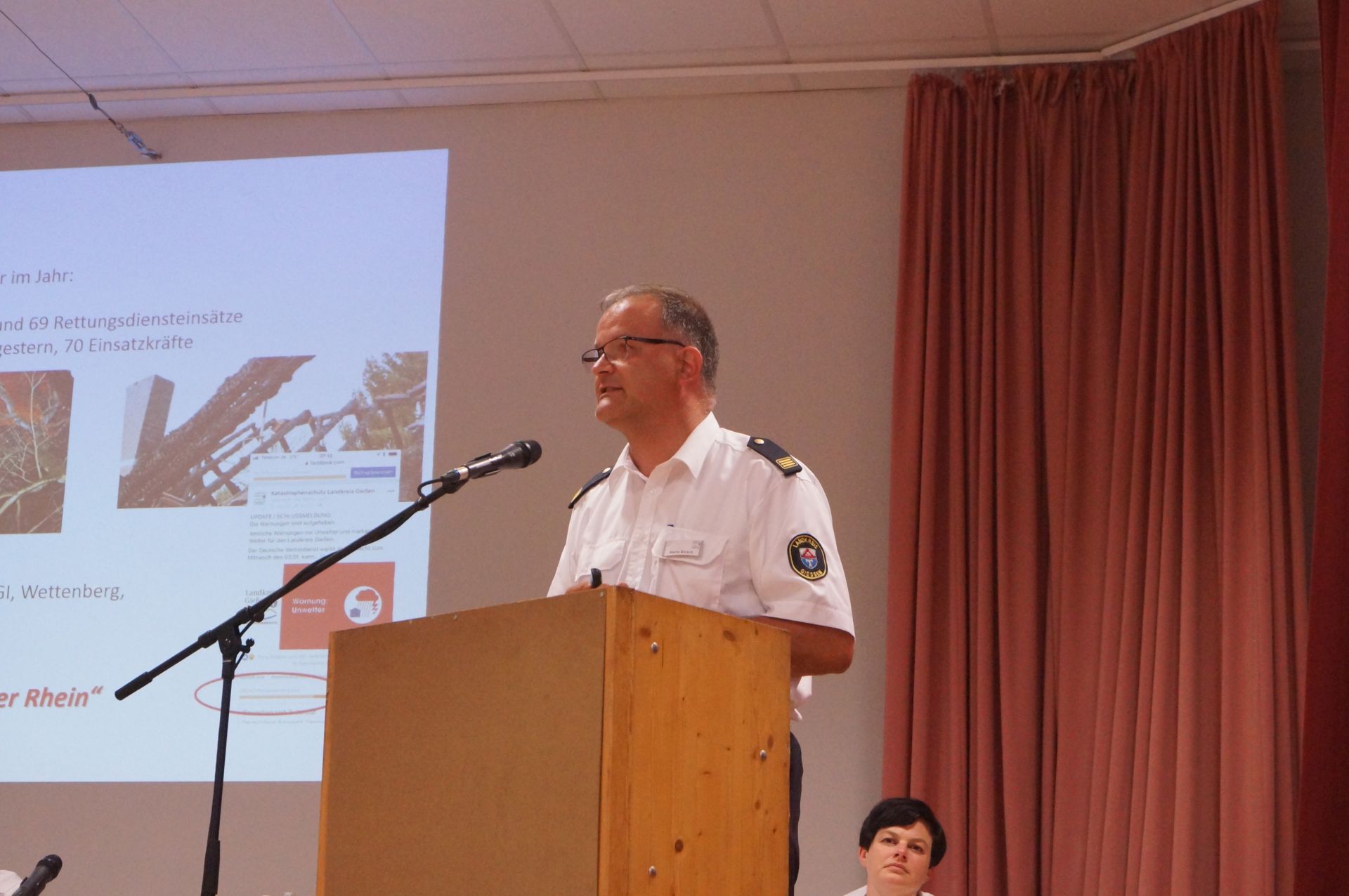 Kreisbrandinspektor Mario Binsch gab einen Überblick über die Ereignisse im Landkreis. In der Einsatzübersicht prägten vor allem die Wetterextreme das Jahr. Im Mai sorgten Unwetter über Bellersheim, Gießen und Wettenberg für ein Einsatzhoch: 810 mal war die Feuerwehr im Wonnemonat alarmiert worden. Während es im Januar und April Hochwassereinsätze an der Lahn und der Wieseck gab, musste man im August vor allem wegen der Trockenheit zu Waldbränden ausrücken.