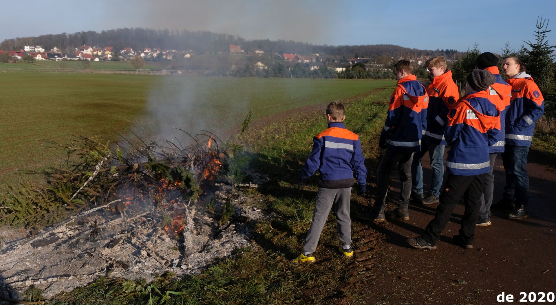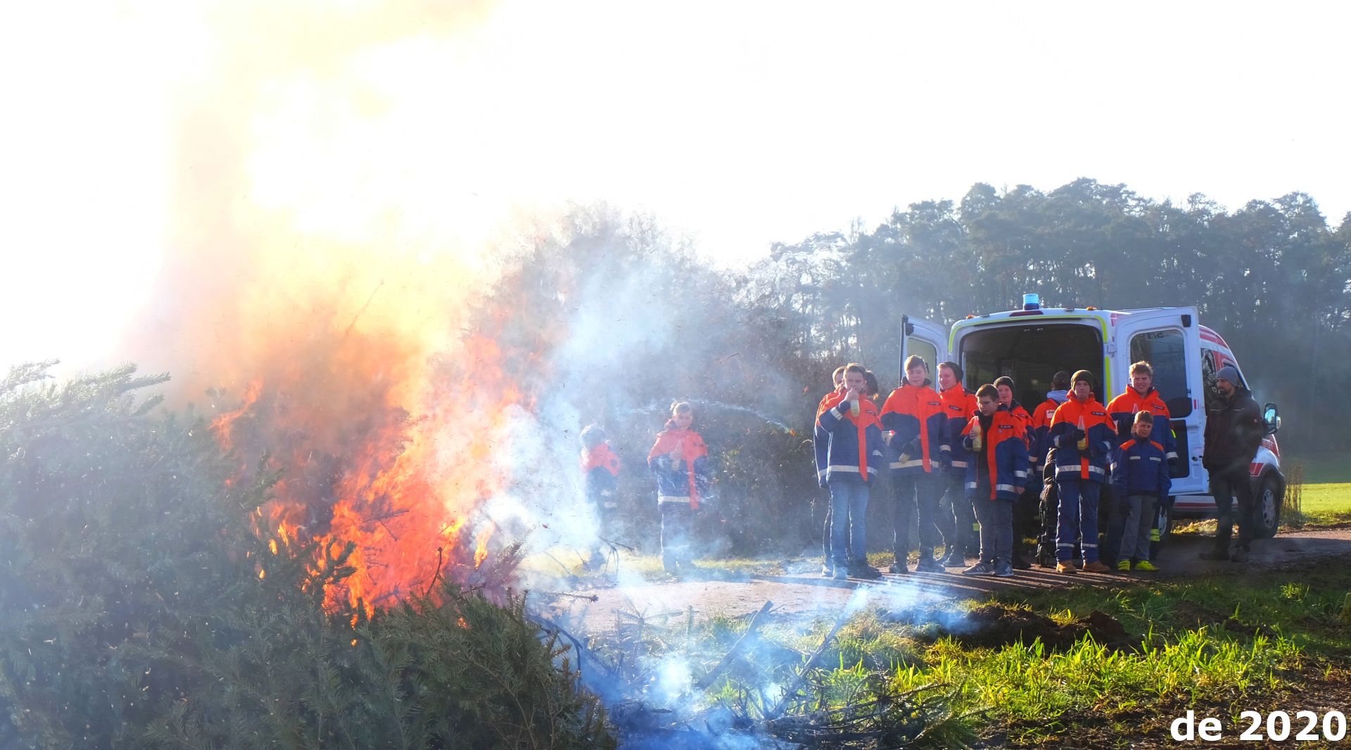 Nach einem schweren Sturm hören Feuerwehrleute oft das Alarmstichwort „Baum auf Straße“. In Nonnenroth lagen am Samstag gleich mehrere Dutzend Bäume auf der Straße – besser gesagt dem Gehweg. Das lag aber nicht etwa an einem Unwetter, sondern der jährlichen Weihnachtsbaumsammlung. Die Jugendfeuerwehr machte sich daran, die ausgedienten Tannen einzusammeln. Mit zwei Traktoren – von Nico Bopp und Jürgen Fritz zur Verfügung gestellt und gesteuert – wurden die Bäume ins Feld gefahren und dort verbrannt. Auf die Helfer warteten heiße Würstchen, während die Bäume in Rauch aufgingen.