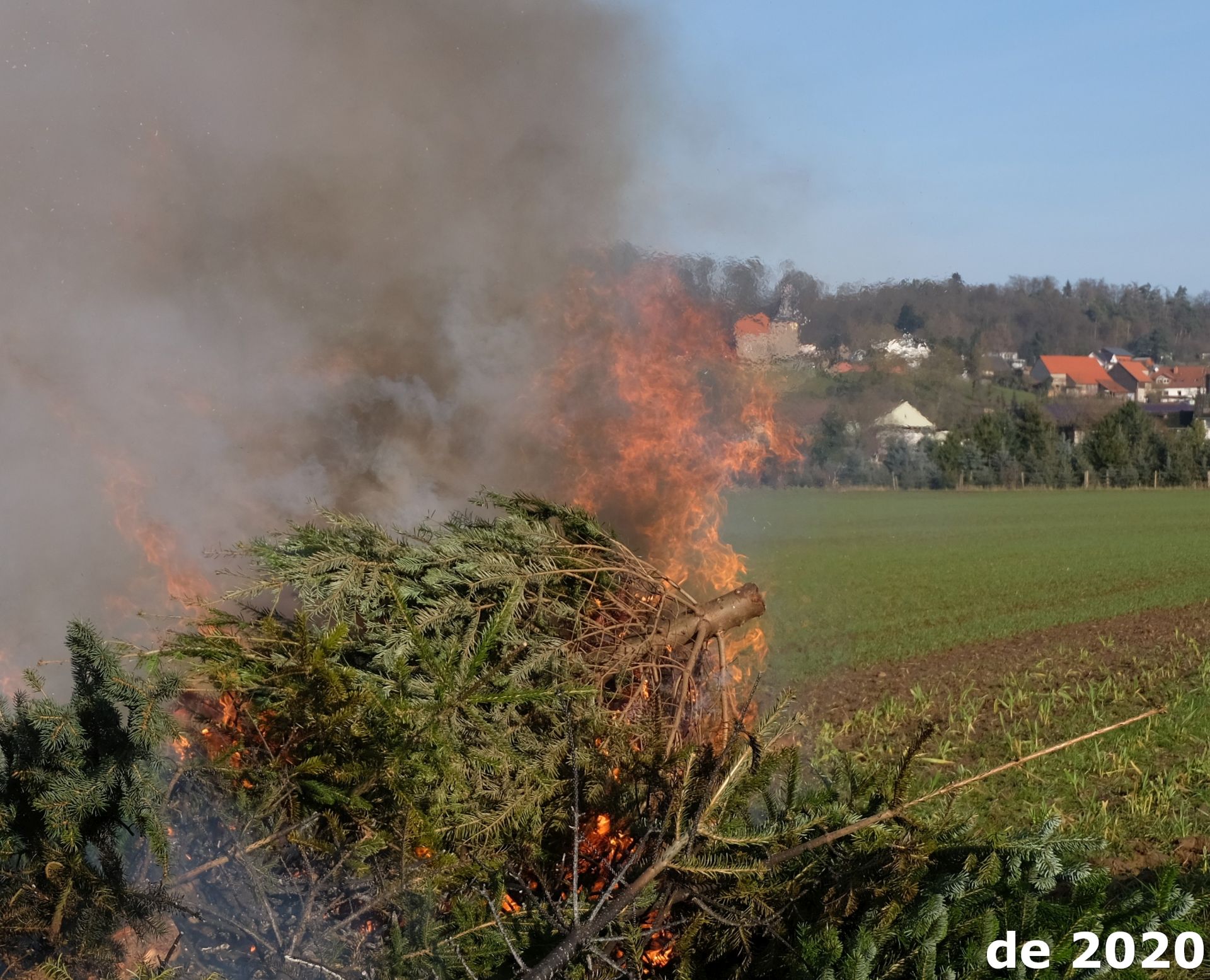Weihnachtsbäume gehen in Rauch auf