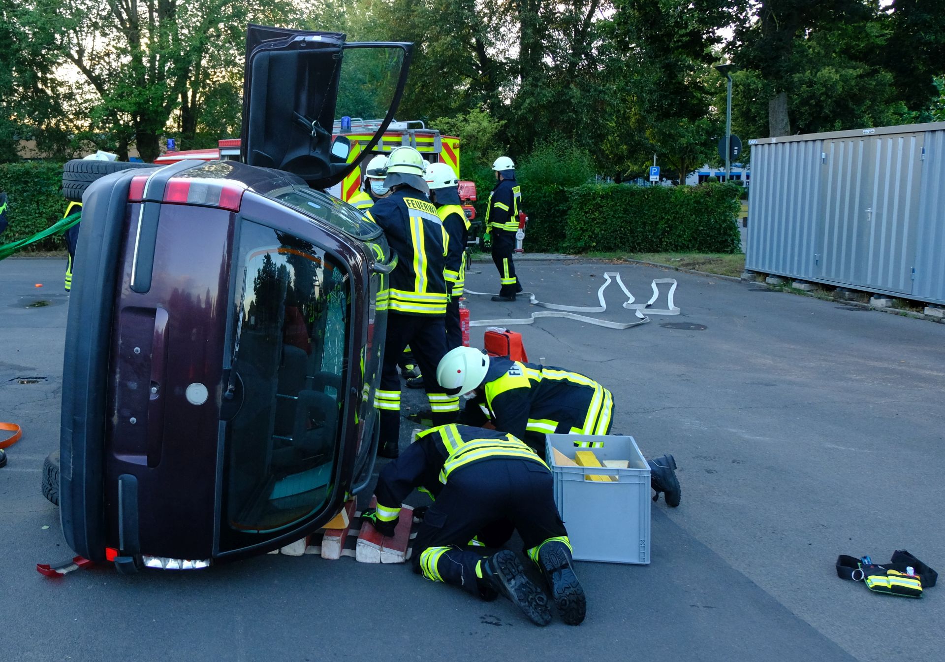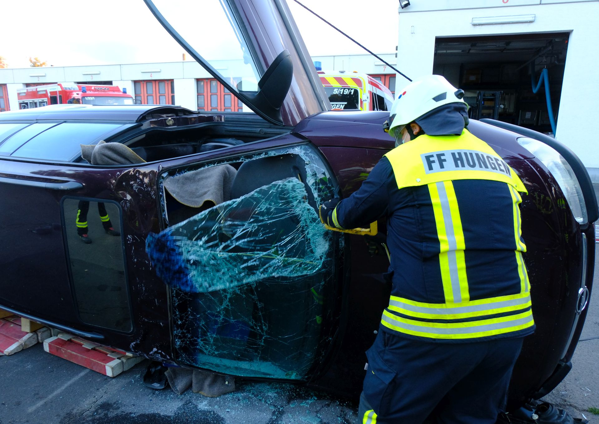 Die Übung fand auf dem Hof des Feuerwehrstützpunktes in Hungen statt und war von Patrick Dehnhardt ausgearbeitet worden. Christian Seibert von der Feuerwehr Hungen-Kernstadt unterstützte den Aufbau und half mit Rat und Tat beim Umgang mit den hydraulischen Geräten. Das Übungsfahrzeug hatte die Firma Lochschmidt zur Verfügung gestellt.