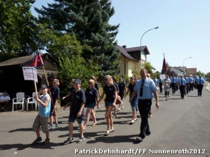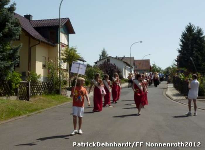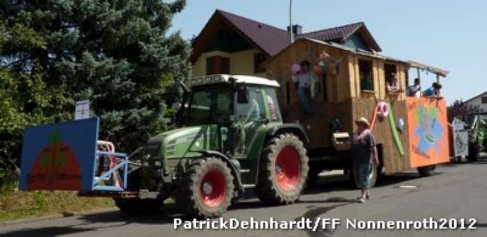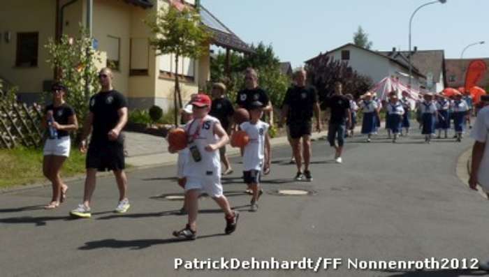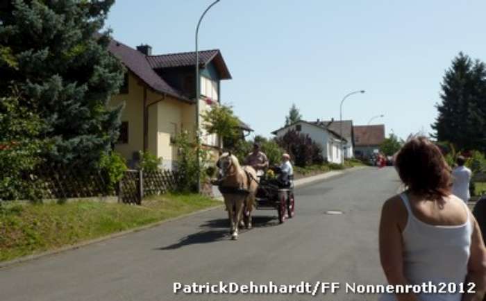 Den heißesten Festzug aller Zeiten erlebte Nonnenroth dann am Sonntag: bei 36Grad im Schatten schlängelten sich 60 Zugnummern  durch die Straßen des Ortes. Ob Nachbarfeuerwehren, befreundete Vereine und Ortsvereine, die Pferde vom Hof Wiesental sowie mehrere Musikzüge – der Festzug war abwechslungsreich aufgestellt.  Sowohl die vielen Zuschauer an der Strecke als auch die 800 Teilnehmer hatten ihren Spaß. Anschließend wurde zusammen im Festzelt zur Musik der Original Biebertaler Musikanten bis tief in die Nacht hinein gefeiert.