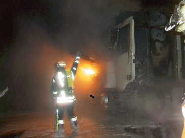 Beim Eintreffen der Einsatzkräfte stand das Führerhaus bereits im Vollbrand. Zwei Trupps gingen unter Atemschutz mit Schaumrohr vor, um den Brand unter Kontrolle zu bringen und ein Übergreifen der Flammen auf die Ladung zu verhindern, was auch letztendlich gelang. Nach Ablöschen des Brandes wurde mit der Wärmebildkamera nach weiteren Glutnestern gesucht, um auch diese auszumerzen.