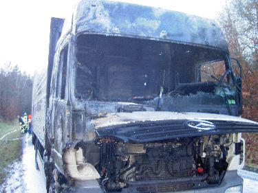 Auf der L 3007 zwischen Nonnenroth und Röthges geriet ein mit Getränken beladener LKW in Brand. Der 30-jährige Fahrer und sein 28-jähriger Beifahrer hatten einen Schlag unter dem Führerhaus gehört. Als sie den Laster stoppten, schlugen bereits die ersten Flammen aus dem Fahrzeug. Die beiden Männer konnten sich unverletzt retten und verständigten sofort die Feuerwehr und Polizei.