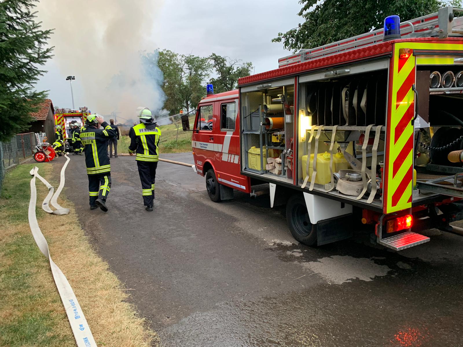 Weitere Kräfte: FF Hu.-Inheiden, FF Hu.-Villingen, FF Hungen, Kreisbrandmeister, Kriminalpolizei, Polizei, Rettungsdienst, stlv. SBI